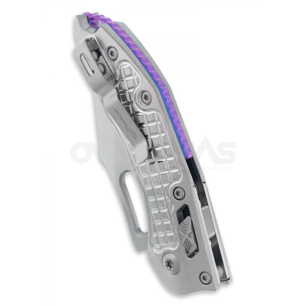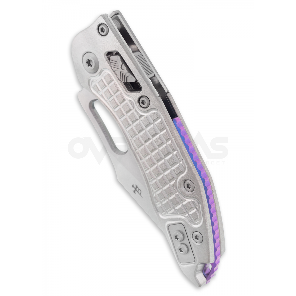 MICROTECH Stitch รุ่นพิเศษ (MARFIONE SELECT) ที่เปลี่ยนด้ามจับเป็น Titanium ผิวด้ามลวดลาย Frag pattern และทำ finishing แบบ Stone wash