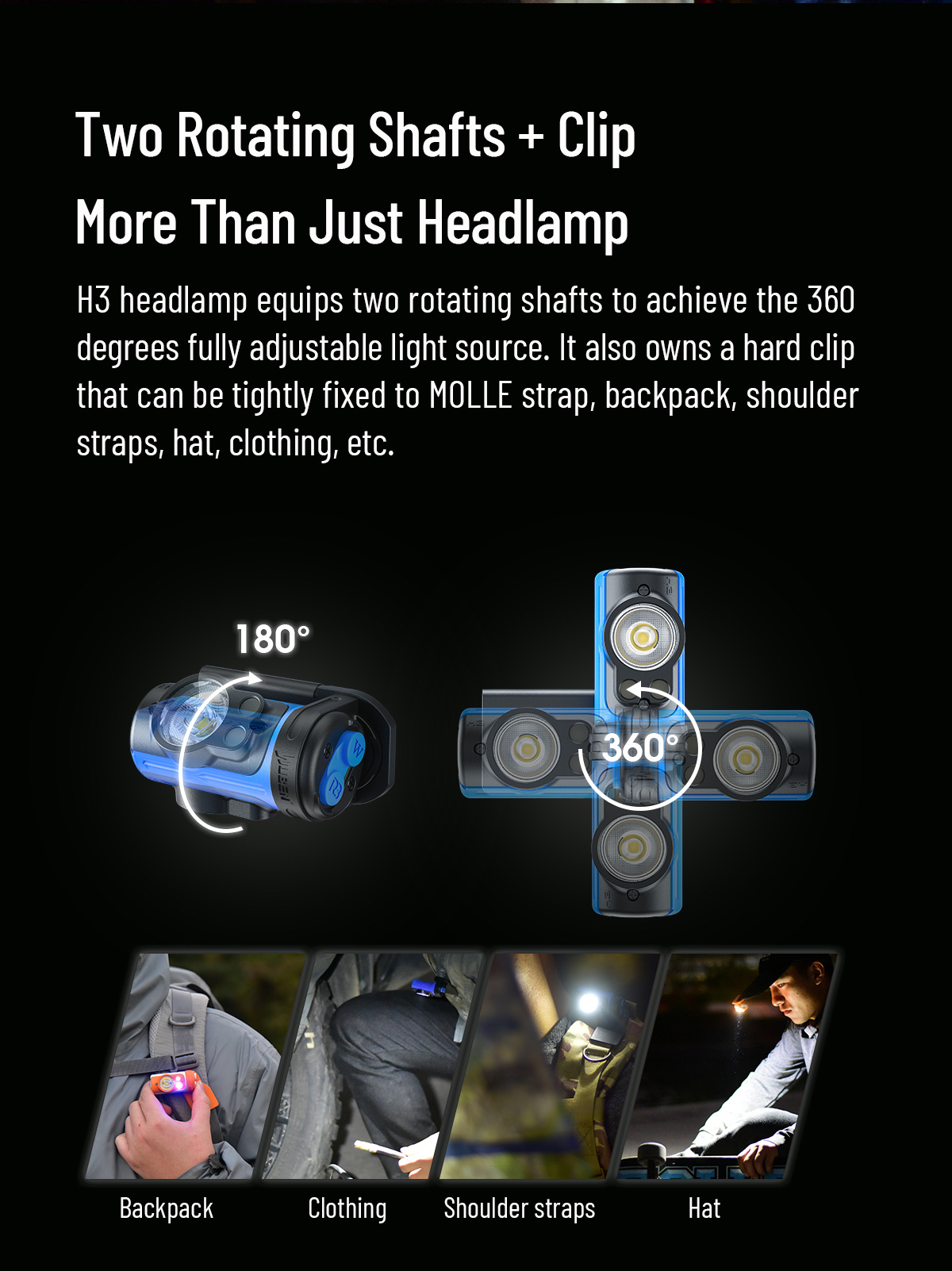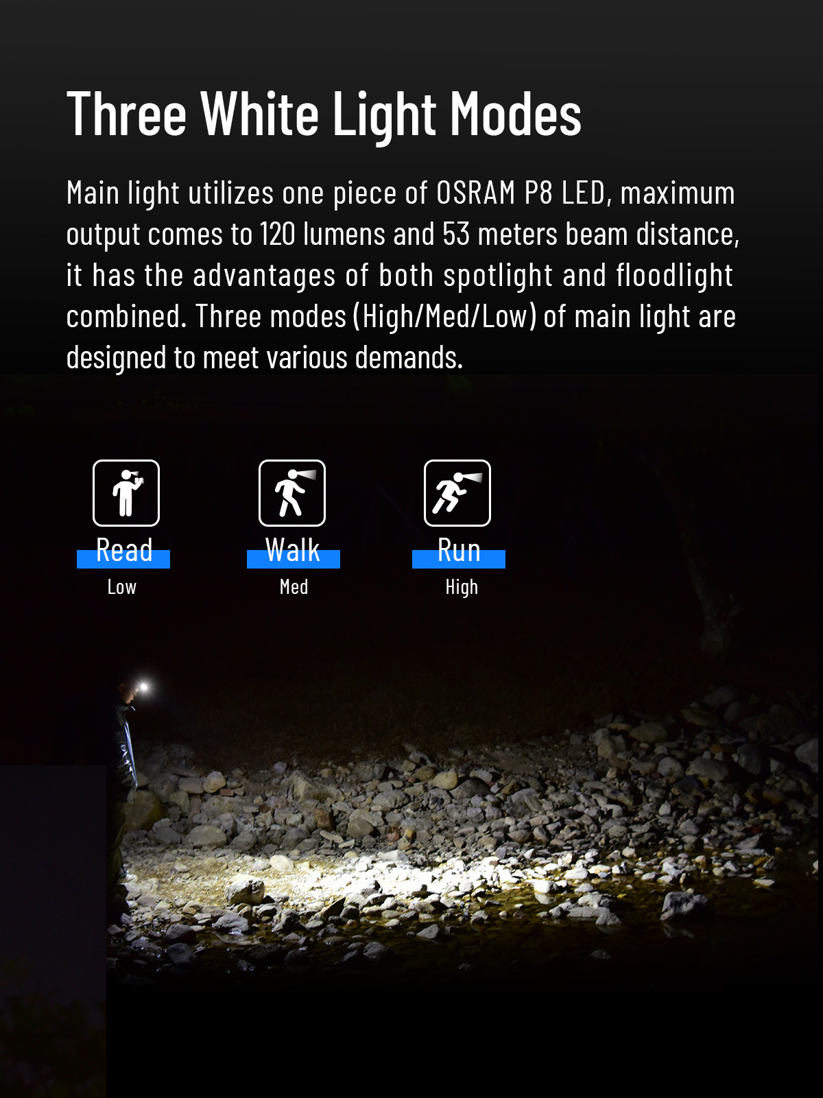 - WUBEN H3 เป็นไฟฉายคาดหัว หลอด OSRAM P8 LED แสงขาว ให้ความสว่างสูงถึง 120 lumens